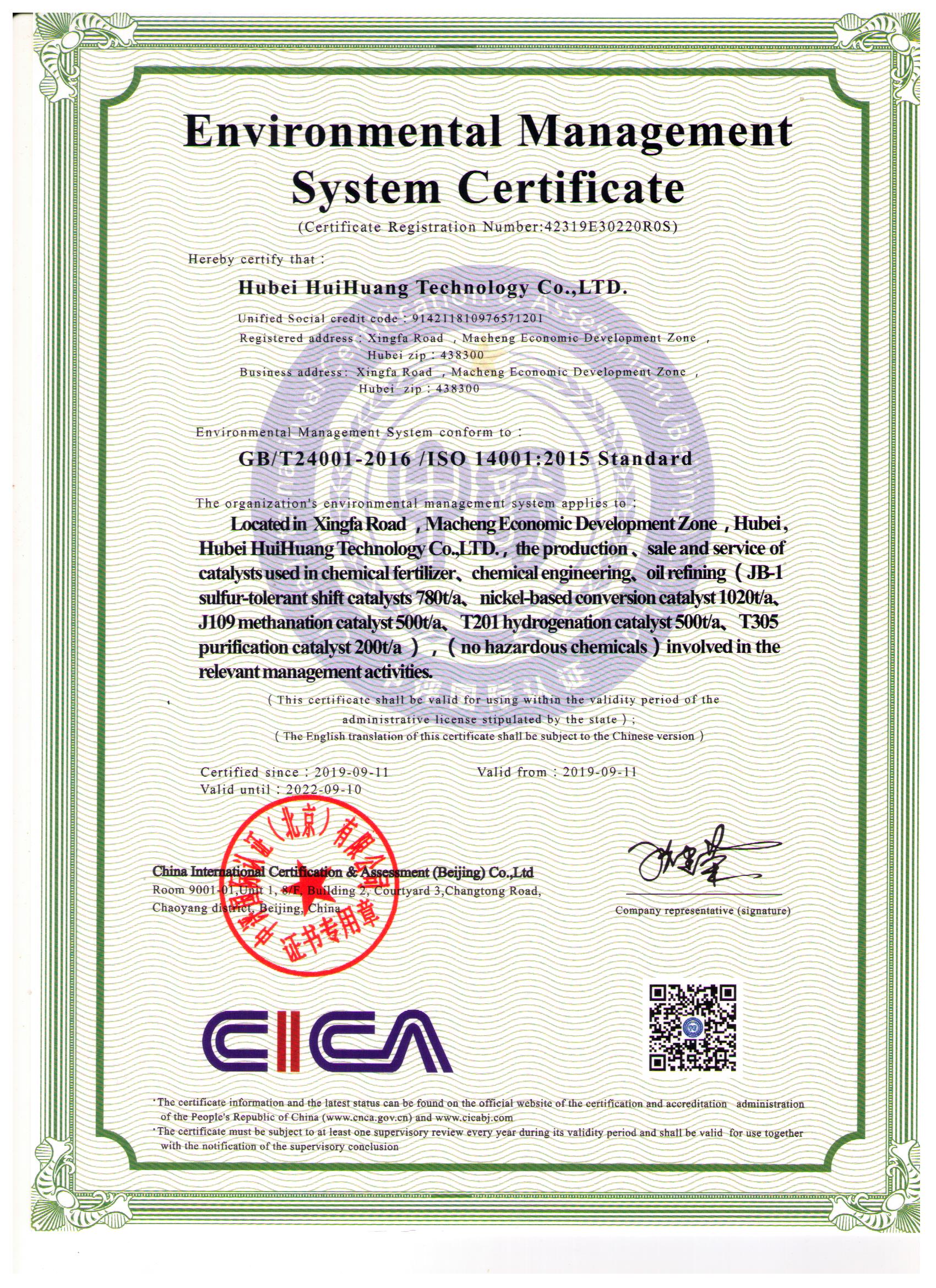 環(huán)境管理體系認(rèn)證證書英文版