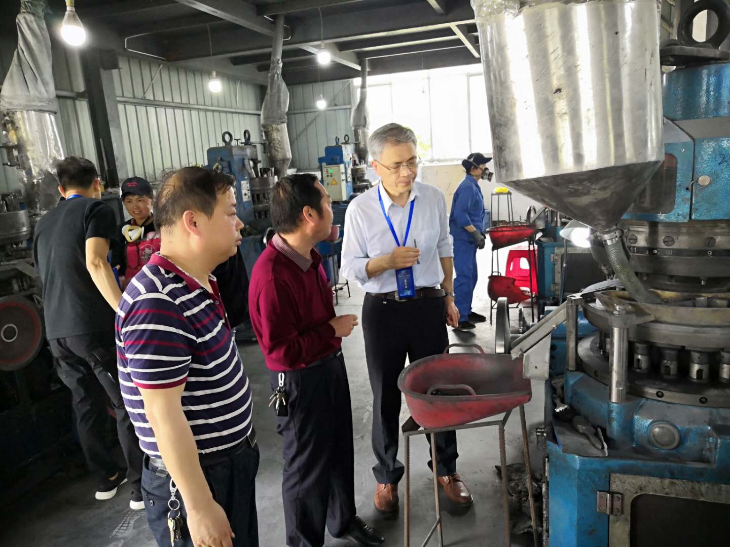華中科技大學(xué)材料科學(xué)與工程學(xué)院的博士生導(dǎo)師張祥林教授作為我公司技術(shù)顧問(wèn),在會(huì)場(chǎng)與我公司簽約結(jié)對(duì)后,就迅速來(lái)到生產(chǎn)現(xiàn)場(chǎng)進(jìn)行實(shí)地考察,并將一副受損嚴(yán)重的催化劑成型模具作為樣本帶走,表示回去后將盡快找出麿損原因,研究改進(jìn)方案。