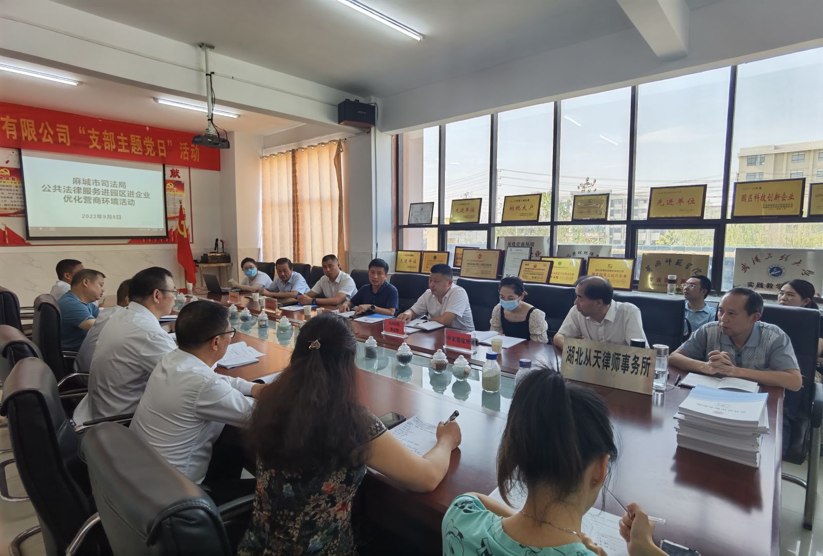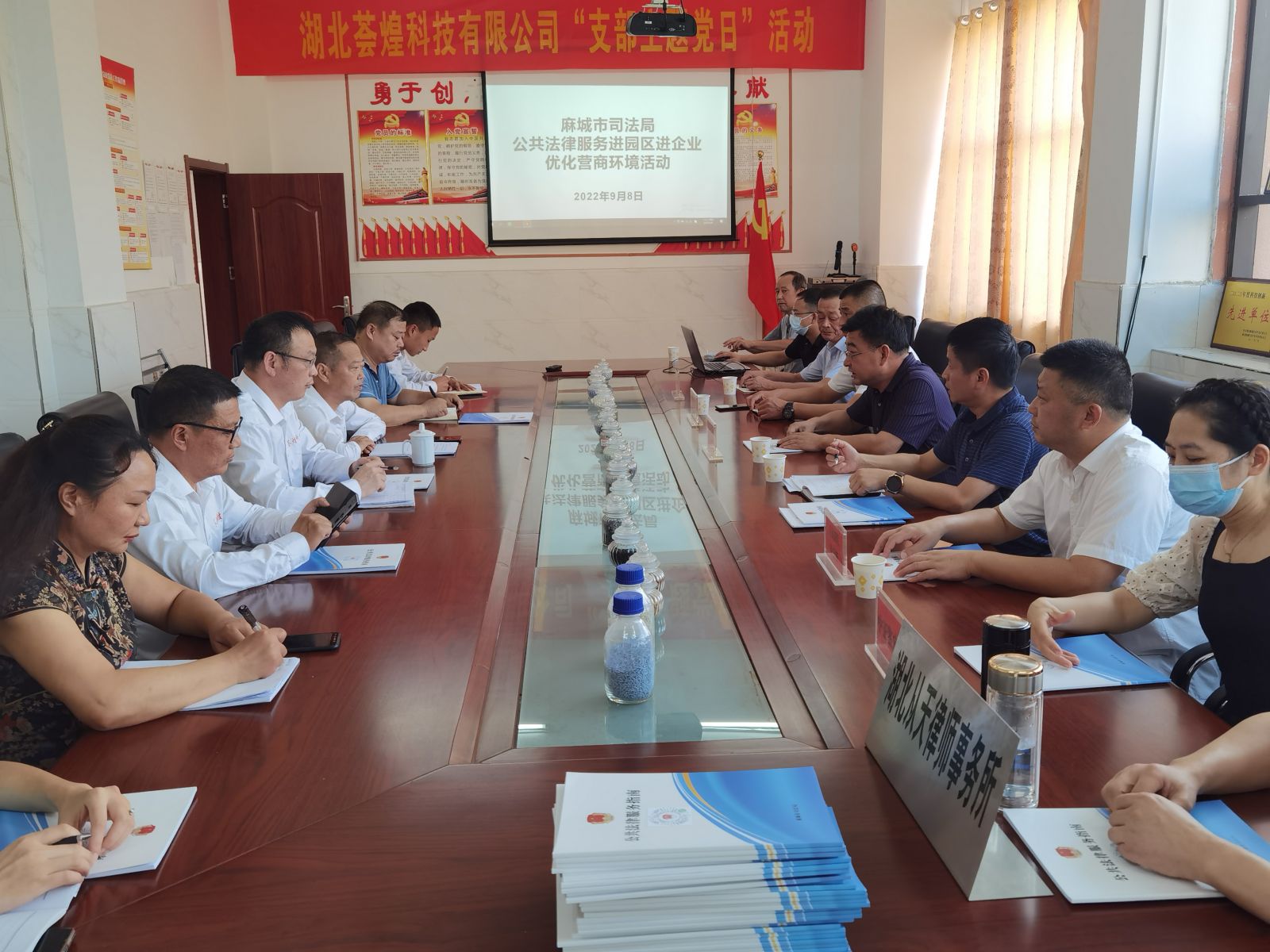 2022年9月8號,由麻城市司法局、麻城市法制辦公室、麻城市公證處、麻城市法律援助中心、人民醫(yī)院鑒定所、中正鑒定所、從天律師事務(wù)所組成的團隊來到薈煌科技,開展法治體檢、普法宣講活動。