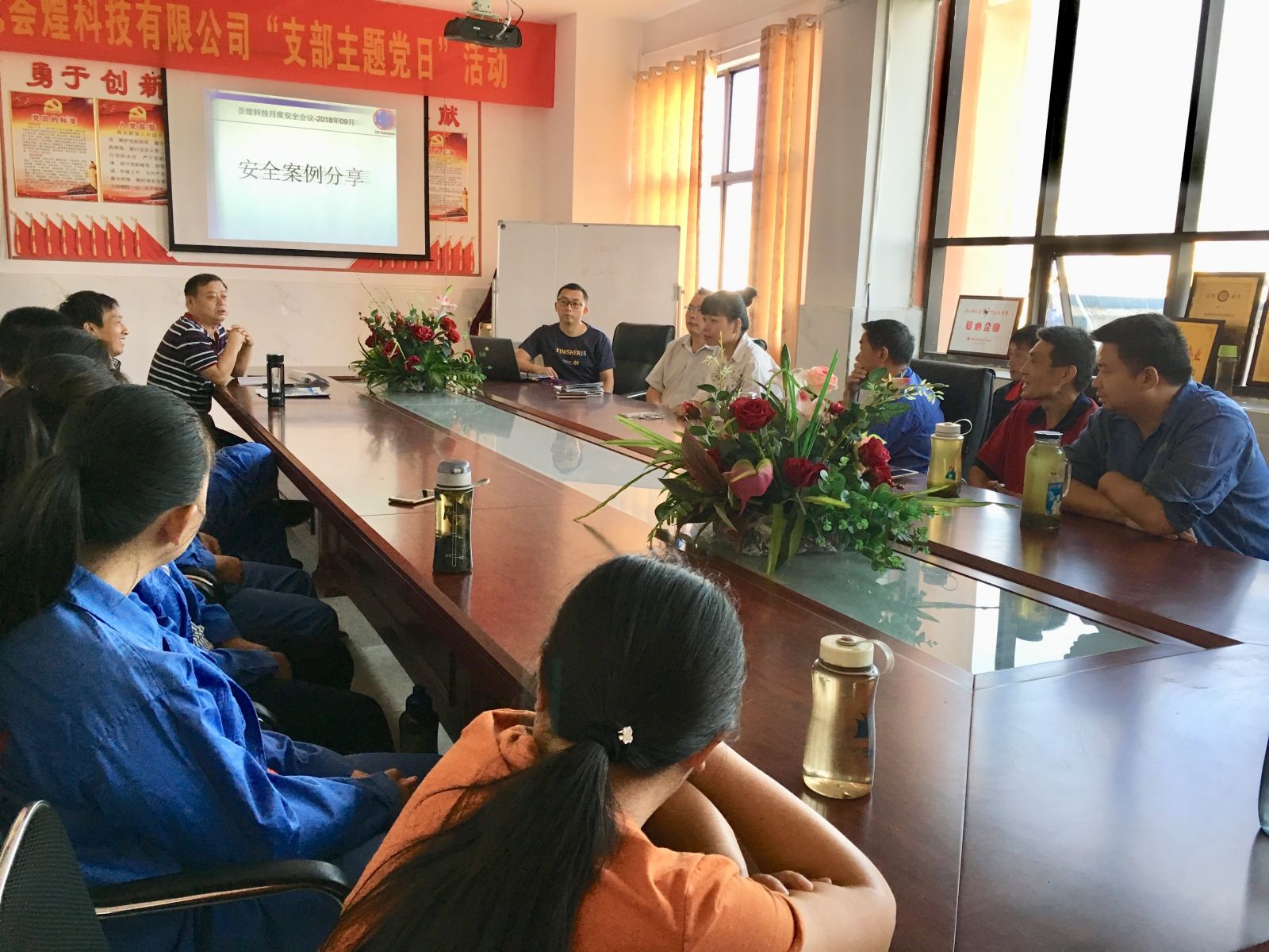 2018年9月8日上午,湖北薈煌科技股份有限公司在會議室召開月度安全生產(chǎn)例會,公司全體員工參加了會議。